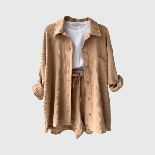 חליפת כותנה-פשתן אלגנטית לנשים בשני חלקים