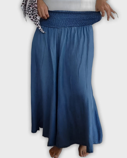 מכנסי פשתן נוחים עם מותן גבוהה ורגל רחבה