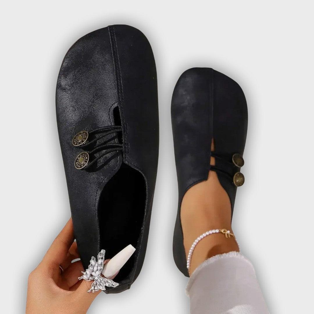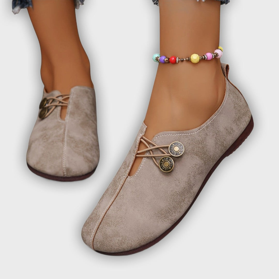 הרצועות האלסטיות עם הכפתורים הדקורטיביים מאפשרות ללבוש ולהסיר את הנעליים בקלות ובו בזמן מוסיפות נגיעה של סגנון.