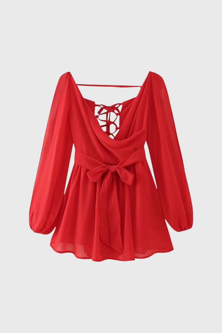 השרוולים הארוכים והחצי שקופים עם הפתחים העדינים מספקים מראה אוורירי ומוסיפים לאאוטפיט שלך אלגנטיות עדינה.