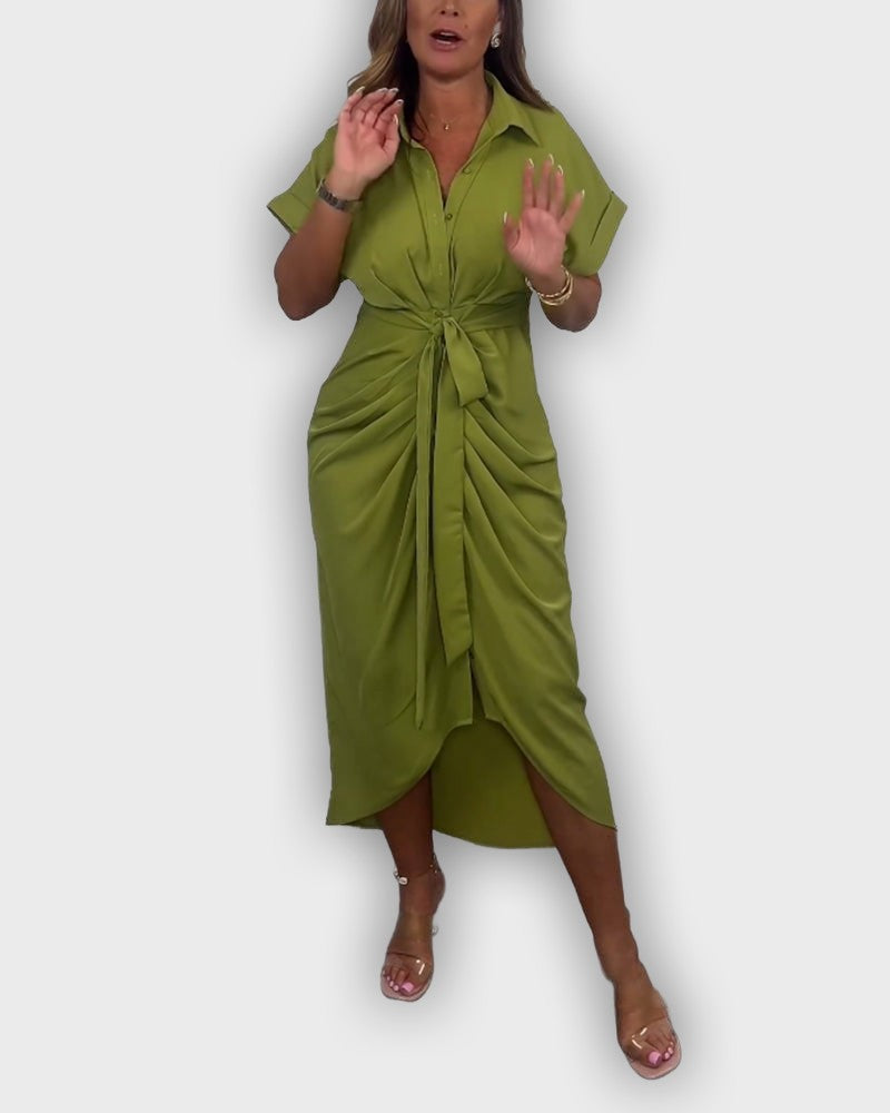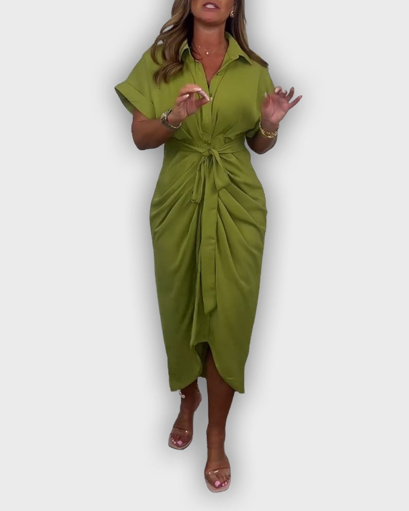 הצווארון האלגנטי והחזית עם הכפתורים מעניקים לשמלה מראה עדין אך אופנתי, שמושך את כל העיניים.